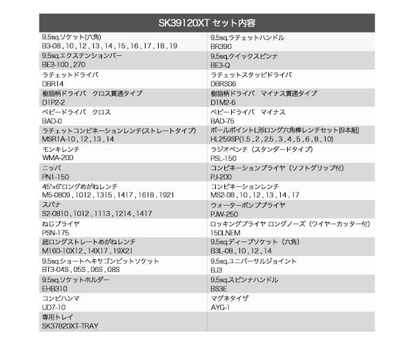 | 付属品 | 専用樹脂成型トレイ(SK37820XT-TRAY) |