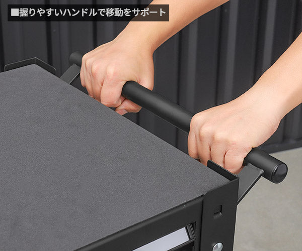 天板を作業台にしたり、SKX0213シリーズ、SKX0223シリーズ、EKR-103Aなどを乗せて、大容量ツールキャビネットのように使用したり。