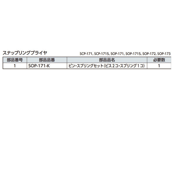 [部品・代引き不可] KTC スナップリングプライヤ用 補給部品 ( ピン・スプリングセット ) SOP-171-K 工具