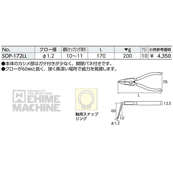 KTC 曲型ロングスナップリングプライヤ軸用 SOP-172LL
