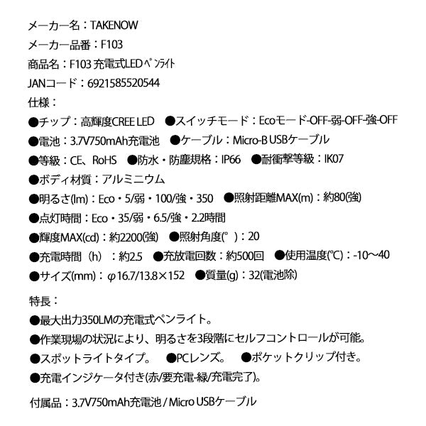 ●点灯時間:Eco・35/弱・6.5/強・2.2時間