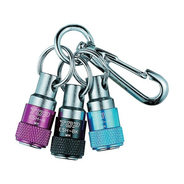 特長:スライド部を引上げて脱着するために安全です。丸穴形状で6.35mm六角が簡単に差し入れ出来ます。別売りのキーアダプターを連結すると鍵などの保管にも使えます。 用途:高所作業時のソケット類の収納に便利です。