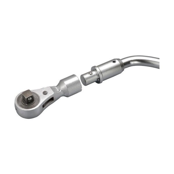 特長:弓形ハンドルで、狭小スペースでも使い易い形状、また隣接するナットに干渉せず、障害物除けに最適です。2段爪を採用、爪の組み合わせが2つ山の為、荷重をしっかりキャッチして耐荷重抜群、送りはスムーズです。ヘッド部は着脱可能で反転して使用できます。
