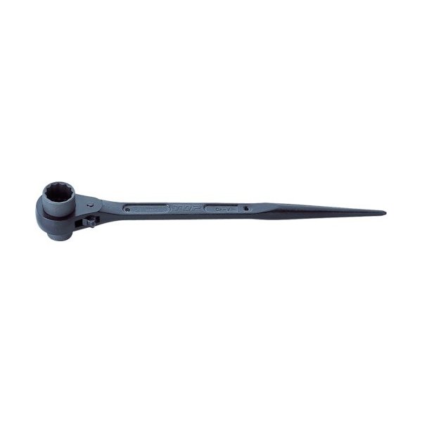 特長:正逆は切り替え爪式です。本体はサビにくいカチオン塗装です。爪の切り替え部の開口が大きく泥水、砂などが入ってもすぐ排除されるため過酷な条件でも極めて安定したラチェット作動が得られます。便利なシノ付です。