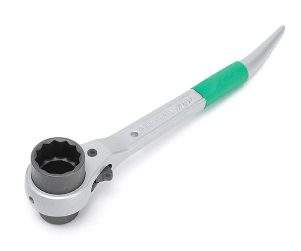 特長:正逆は切り替え爪式です。本体はアルミ製のため、超軽量化を実現しました。サイズ別、色分け滑り止めグリップ付です。仮設足場作業に最適です。 用途:仮説足場作業に。