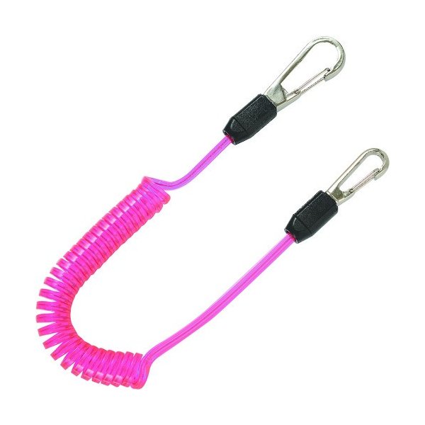 特長:このハイスクウェアシリーズは復元力が高い四角コイルタイプです。コイル巻き部に隙間が無いので擦れることなく2本掛けでもからみにくいです。丸コイルに比べて安全強度は1.6倍です。 用途:工具類の落下防止用。