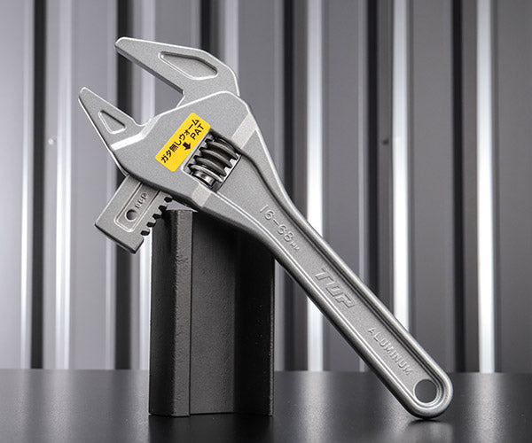 特長:縦型のアルミ製モーターレンチです。メッキ付ナットを傷付けずに作業できます。保証トルクは、235N・m(24kgf・m)です。使用範囲が広い15°縦型形状です。