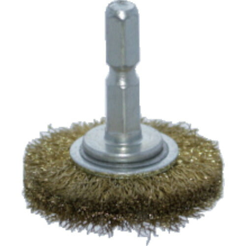 ●六角軸付のホイール(円盤型)ブラシ●10mm厚仕様●真鍮線0.15mm