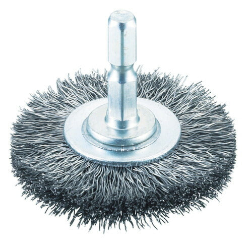 ●六角軸付のホイール(円盤型)ブラシ●10mm厚仕様●ワイヤ鋼線0.3mm