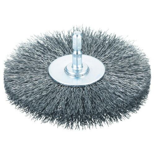 ●六角軸付のホイール(円盤型)ブラシ●10mm厚仕様●ワイヤ鋼線0.3mm