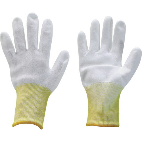 ●色:ホワイト●サイズ:M●厚さ(mm):5●ゲージ数:13●リストカラー:黄色●全長(cm):23.0±10●手のひら周り(cm):90±3●中指長さ(cm):76±3●耐切創レベル:2●EN388 2016規格:2/A