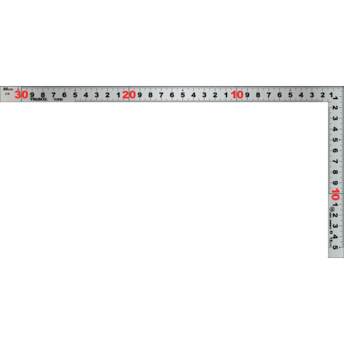 ●表裏cm目盛●JIS規格品●外側基点内目盛付●シルバー仕上(艶消し加工)●直角度:100mmで±0.1mm以下●長さの許容差:全長±0.2mm