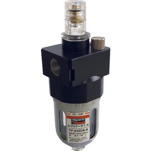 ●使用圧力(MPa):1.0●処理空気流量([[M3]]/min):0.41●貯油量([[CM3]]):25●接続口径:Rc1/4●全長(mm):114●使用流体:空気