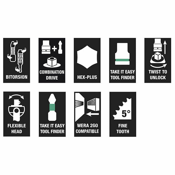 ベルトに取り付けてWera 2goシステムにドッキングする堅牢なテキスタイルホルスター。