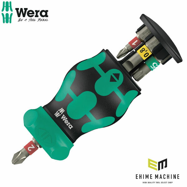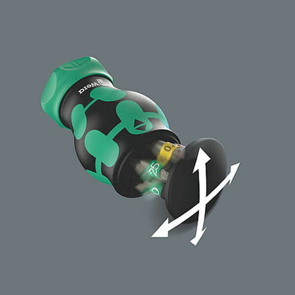 Wera「RA1」スタビードライバービットセットは、手のひらサイズのラチェット式ハンドルに6本のビットを内蔵。