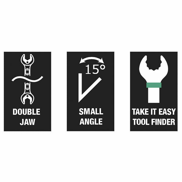 ツールバッグに省スペースで収納できる新しいクリップのジョーカーオープンエンドレンチセット。