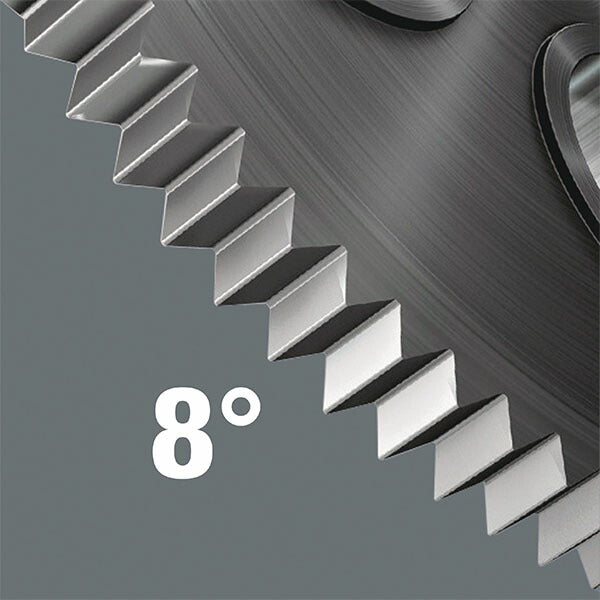 小さな戻り角のための細かい歯。