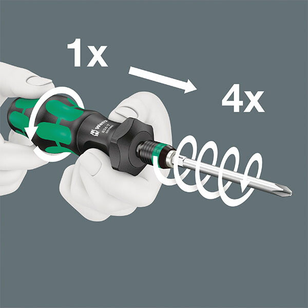 ドライバーのハンドルに組み込まれており、滑らかなカップリングにより純粋に機械的に作業速度が 4 倍になります。