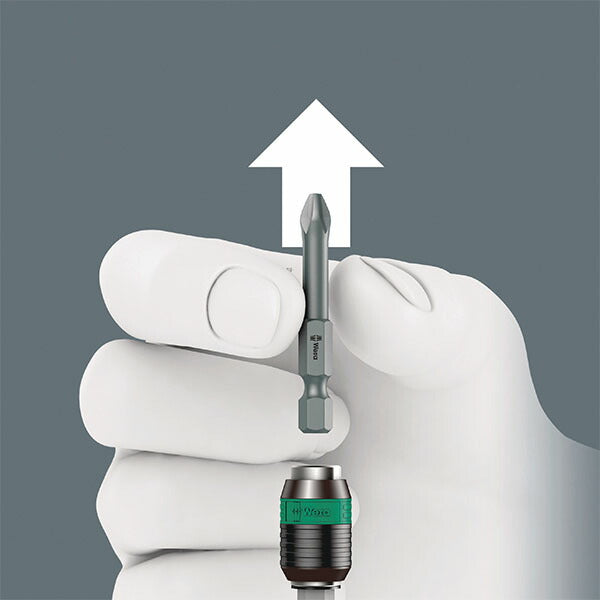 Rapidaptor 機能を使用すると、ビットを直接挿入でき、スリーブを前方に押すことで簡単に取り外すことができます。