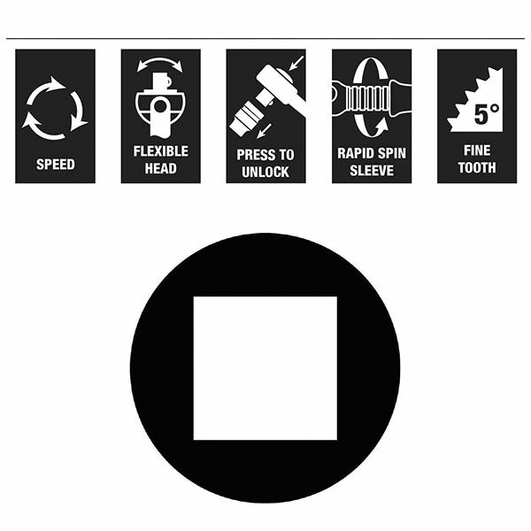 ラチェット ヘッドは自由に回転し、両側のスライド スイッチを使用して任意の位置にロックできます。