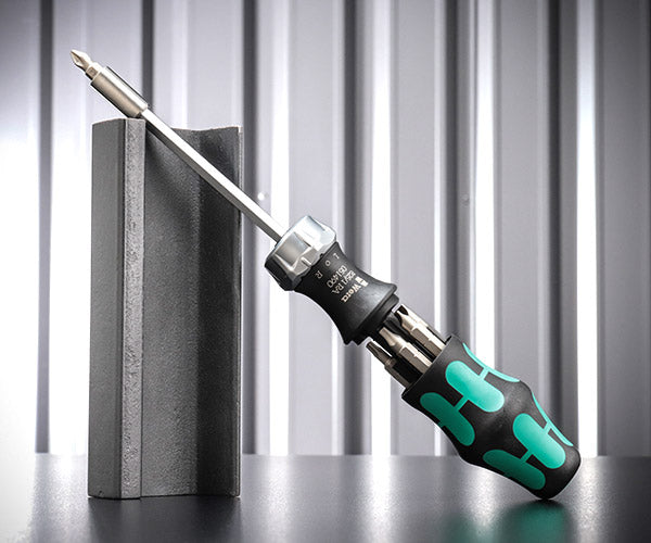 Weraのコンパクトなツールは、高速作業と特に人間工学に基づいたねじ回しのためのマルチコンポーネントのKraftformハンドルを備えています。