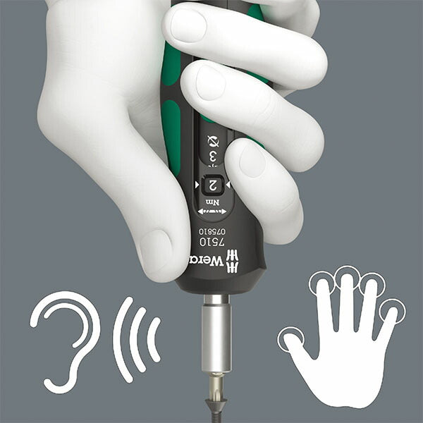 設定されたトルク値に達すると、カチンとはっきり聞こえます。