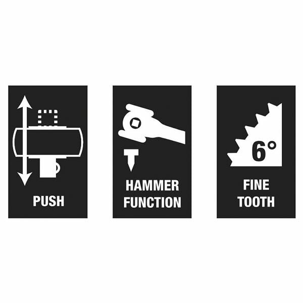 デュアルラチェット歯とわずか6°の最小戻り角度により、狭い状況でも迅速かつ正確なねじ締めが可能になります。