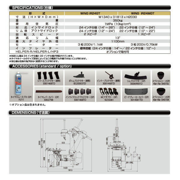 EIWA エイワ WING iR24GT タイヤチェンジャー(リム径24インチ仕様)